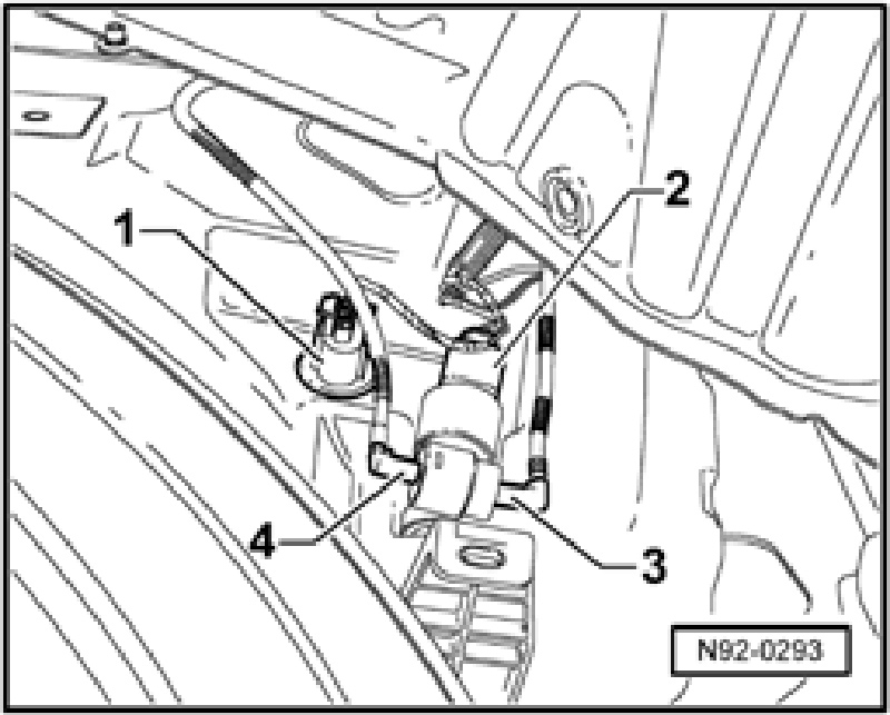 - Disconnect harness connector -1 - and pull Windshield Washer Fluid Level Sensor G33 out of its rubber seal.