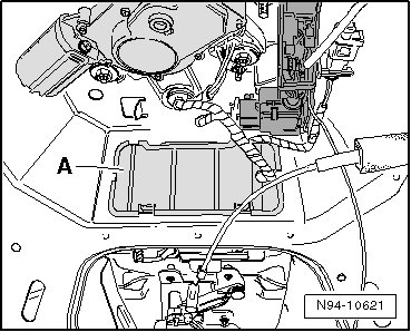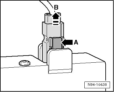 - Press locking mechanism - A - and pull harness connector out of control module in direction - B -.