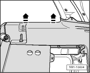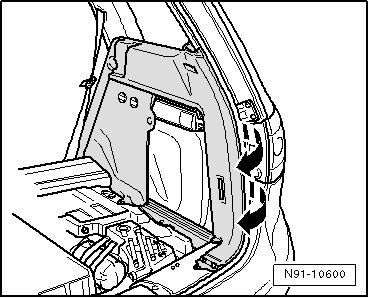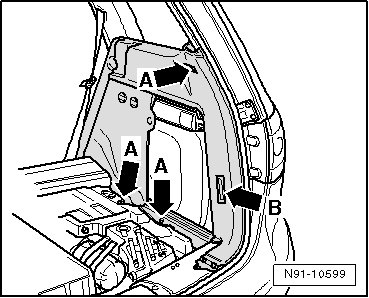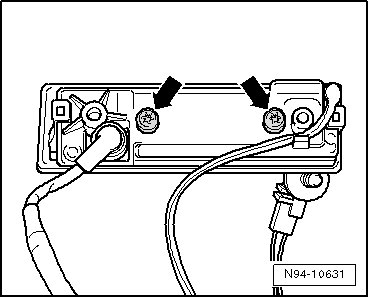 - Pull out both wiring harnesses - arrows - from rear lid interior so that harness connectors in both wiring harnesses emerge.