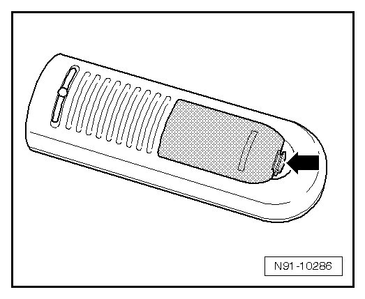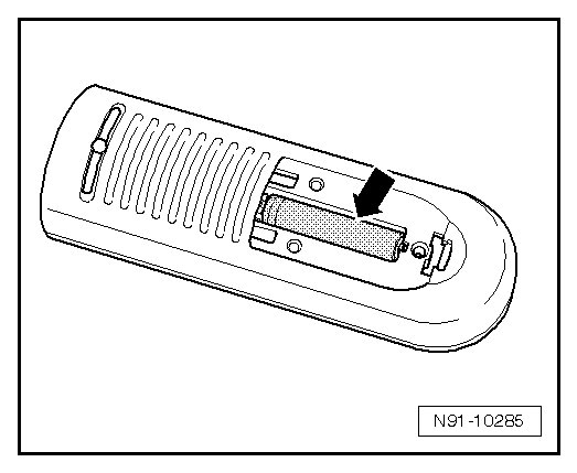 - Open cover of remote control - arrow -.