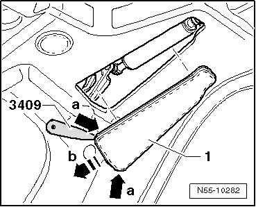 - Loosen cover - 1 - at rear corners - a arrows - with Trim Removal Wedge (3409).