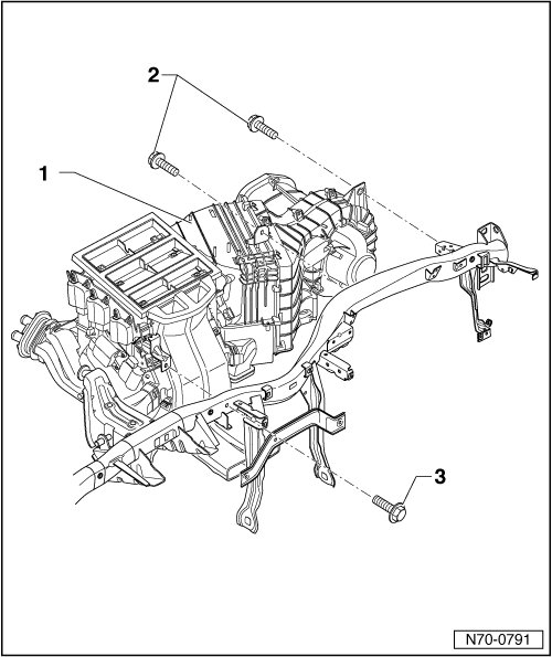 - Secure heating and air conditioning unit - 1 -, in front passenger footwell, against possible sagging.