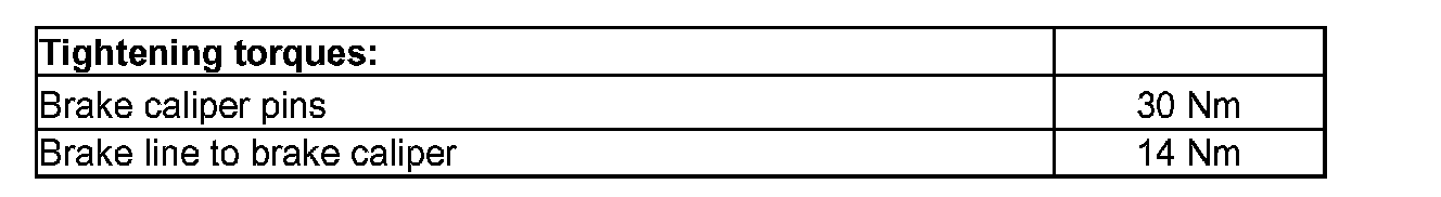 Work procedure applies only for replacing or when performing subsequent service work on brake caliper.