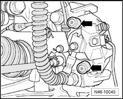- Secure brake caliper to brake carrier using both guide pins - arrows -.