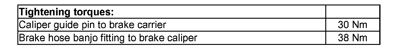 Work procedure applies only for replacing or when performing subsequent service work on brake caliper.