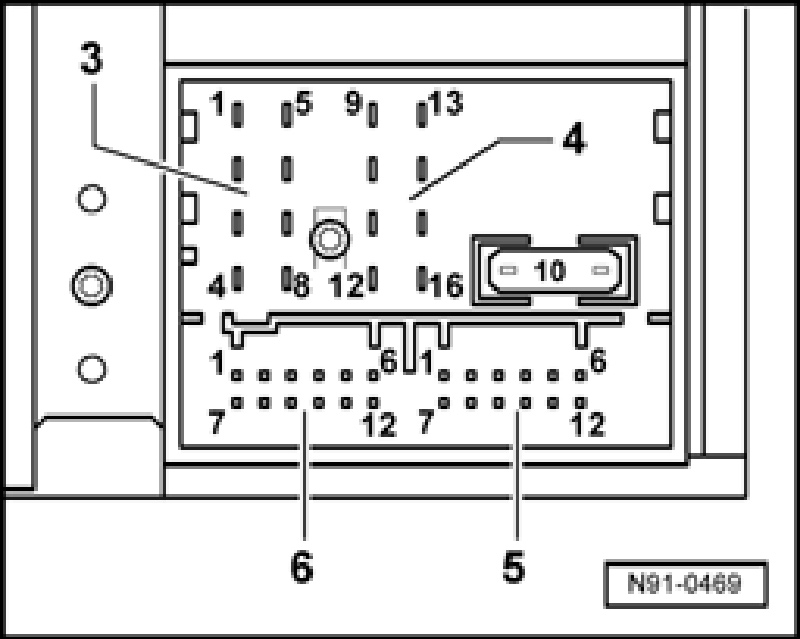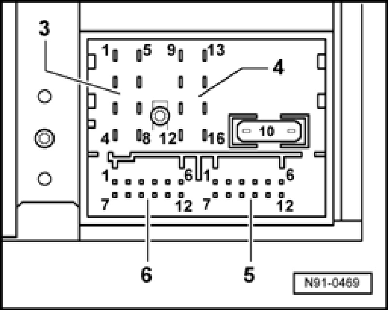 Multi-pin connector 6, 12-pin for CD Changer control and CD audio input signal