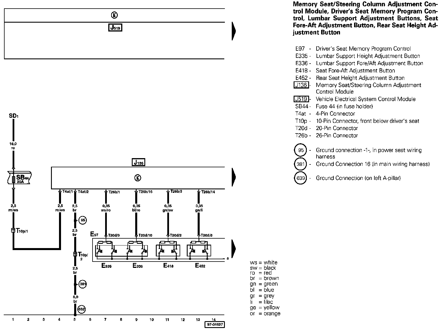 Fuse Identification: Starting with fuse 23, fuses in the fuse holder are identified with an additional numeral 2 added to the number when shown in the wiring diagram (i.e. fuse 23 in the vehicle becomes 223 in the diagrams, fuse 24 becomes 224, and so on).
