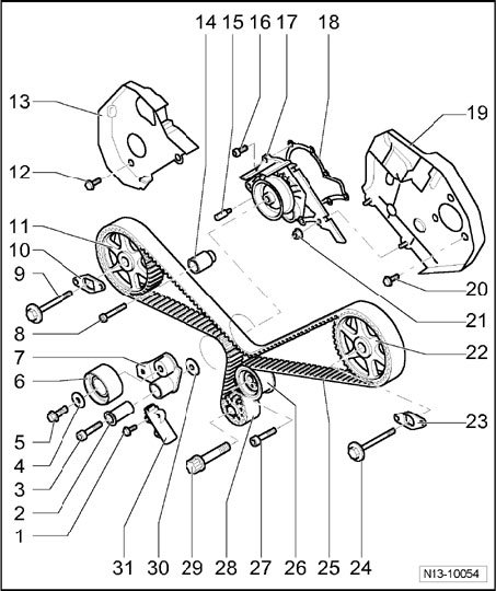 13 - Right rear toothed belt guard