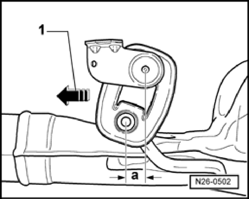 - Press exhaust system in direction of travel - 1 - and tighten double clamps tightly until dimension - a - at suspensions is reached. Center muffler: Dimension a = 10 mm, Rear muffler: Dimension a = 15 mm
