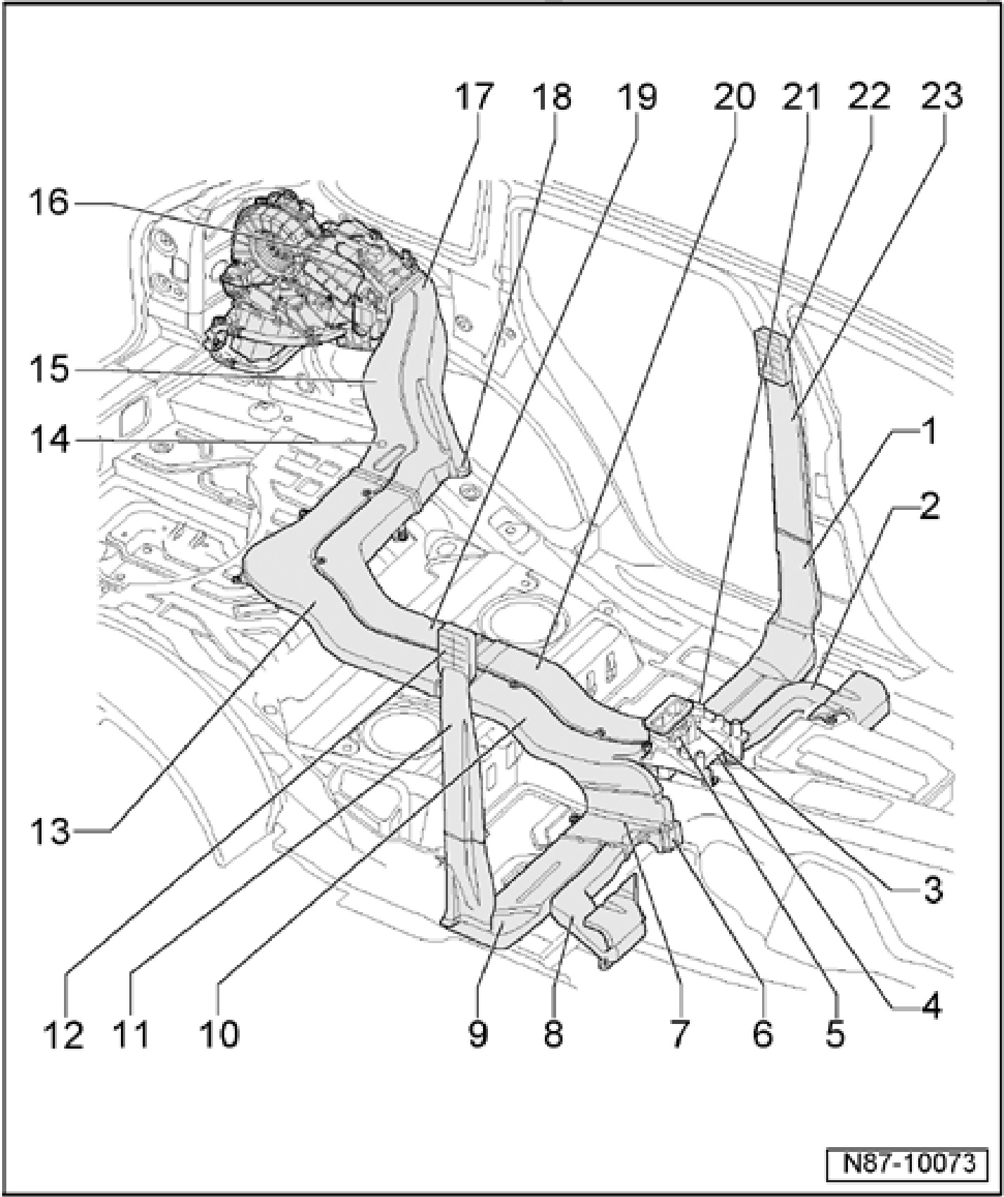 21 - Left B-pillar & footwell air channel with shut-off flap