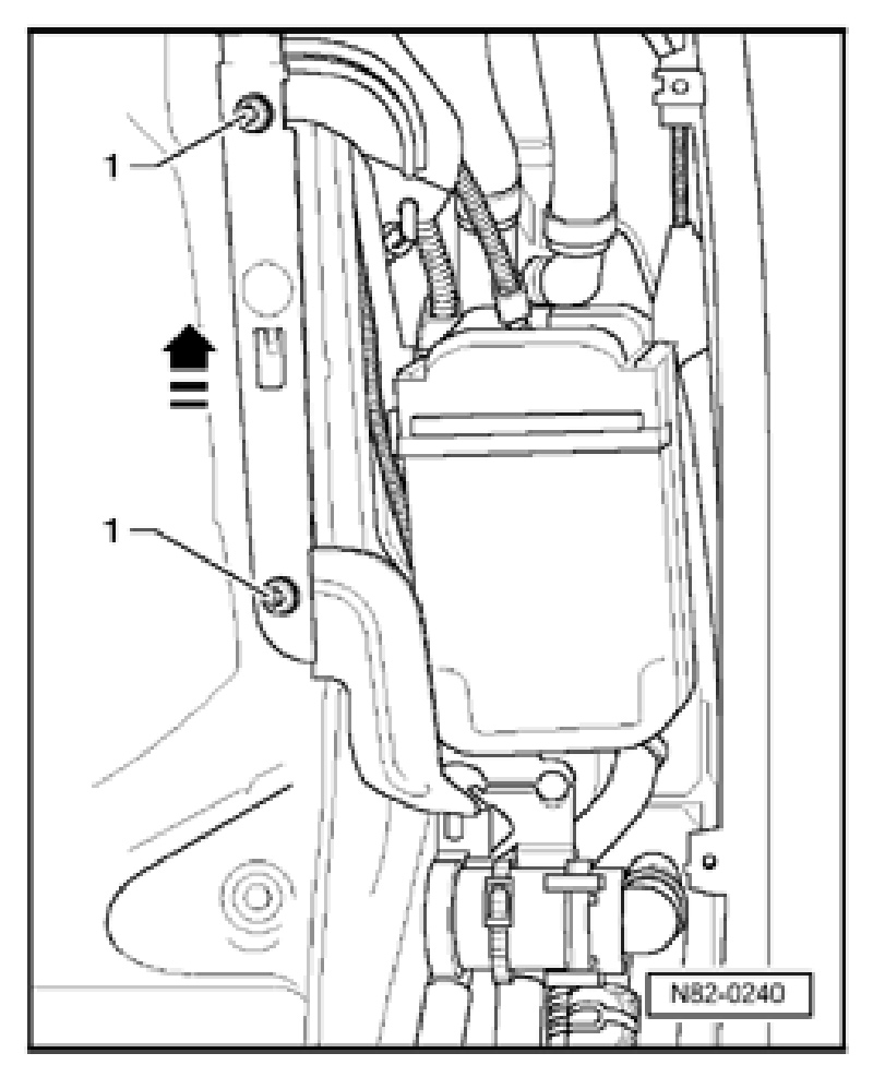 - Unhook auxiliary coolant heater by lifting upwards - arrow -