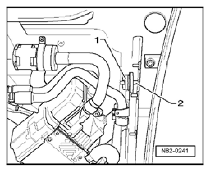 - Loosen coolant hose clamp type clip -1 - and pull coolant hose off coolant pipes.