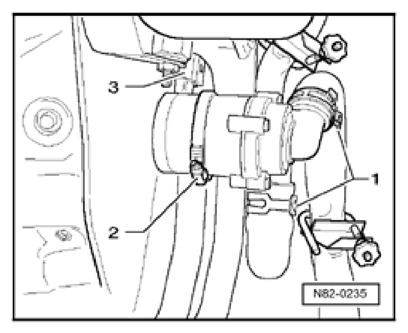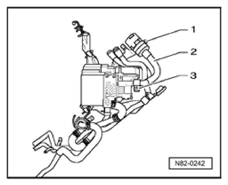 - Remove screw -1 - and clamp - 3 -. Pull intake connecting piece - 2 - from auxiliary engine coolant heater.