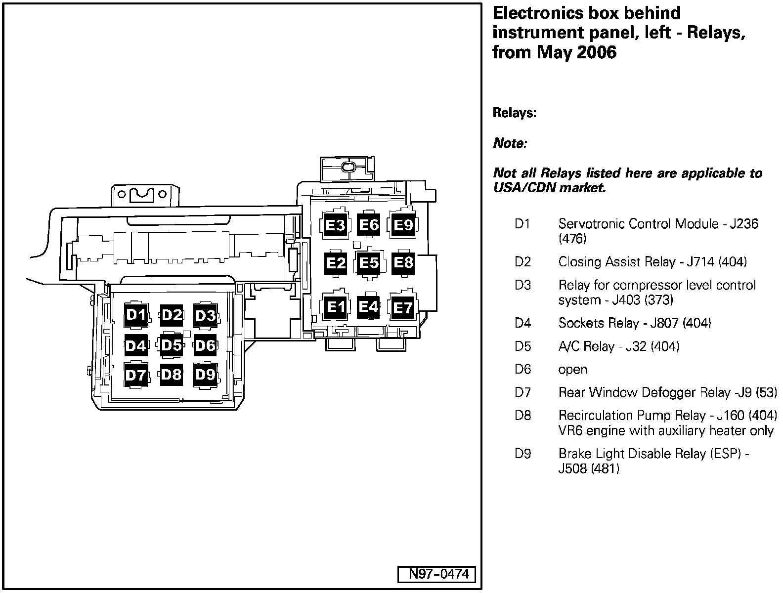 Electronics Box Behind Instrument Panel, Left - Relays, (Part 1):