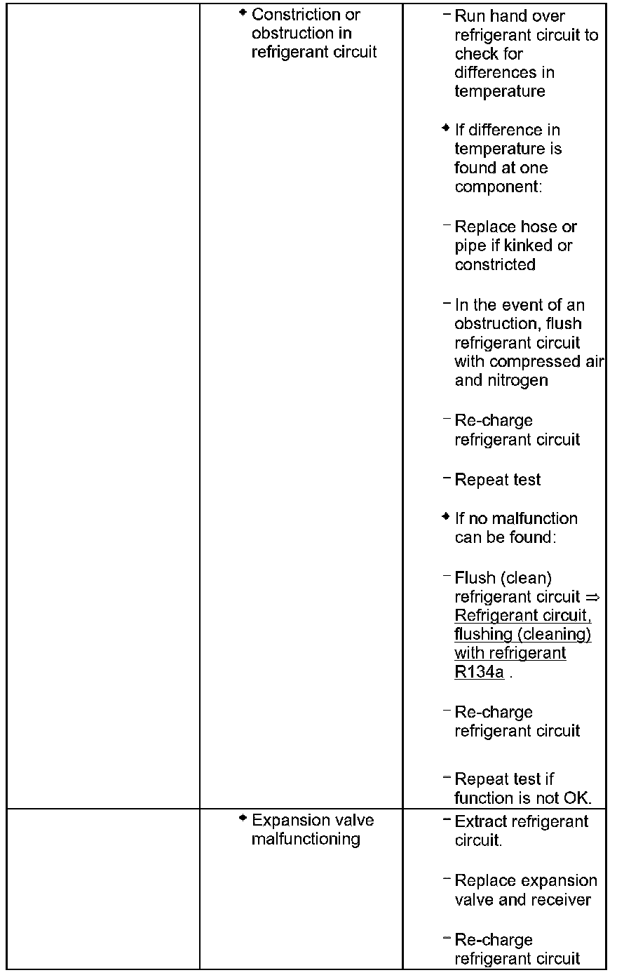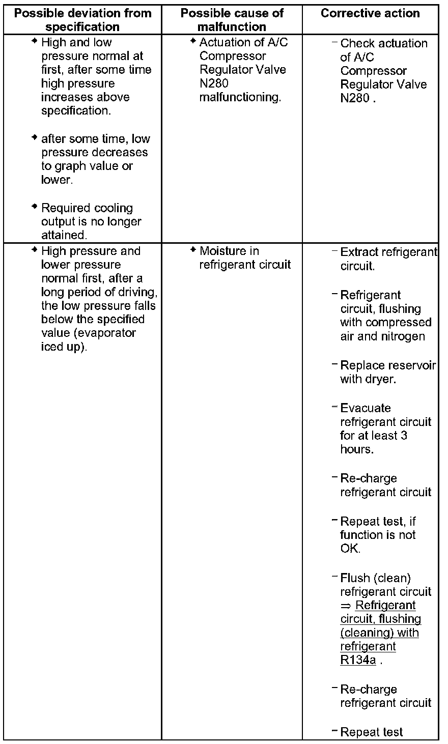 - If no malfunction is found with this complaint, flush (clean) refrigerant circuit with refrigerant R134a. If that is not possible in this workshop, flush refrigerant circuit with compressed air and remove moisture with nitrogen.