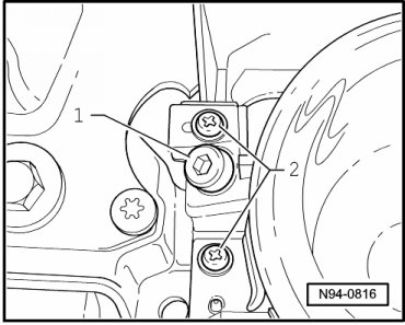 - Unscrew mounting bolt - 1 - above headlamp and remove washer - 2 -.