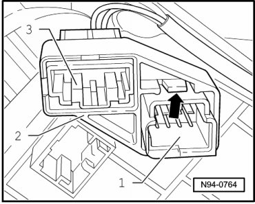 - Release locking mechanism - arrow - at multi-pin harness connector of Airbag Spiral Spring/Return Spring With Slip Ring (F138) and of Steering Angle Sensor (G85) - 1 -.