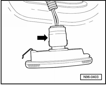 - Remove lamp socket - arrow - from Engine Compartment Lamp (W27).