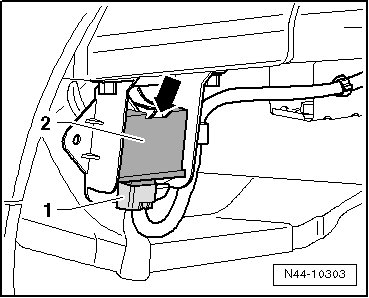 - Raise the retainer - arrow - and remove the right rear tire pressure monitoring transmitter (G434) - 2 -.