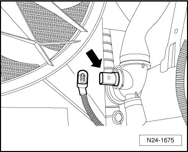 - Disconnect 2-pin connector from Engine Coolant Temperature (ECT) Sensor (on Radiator) (G83) (arrow).