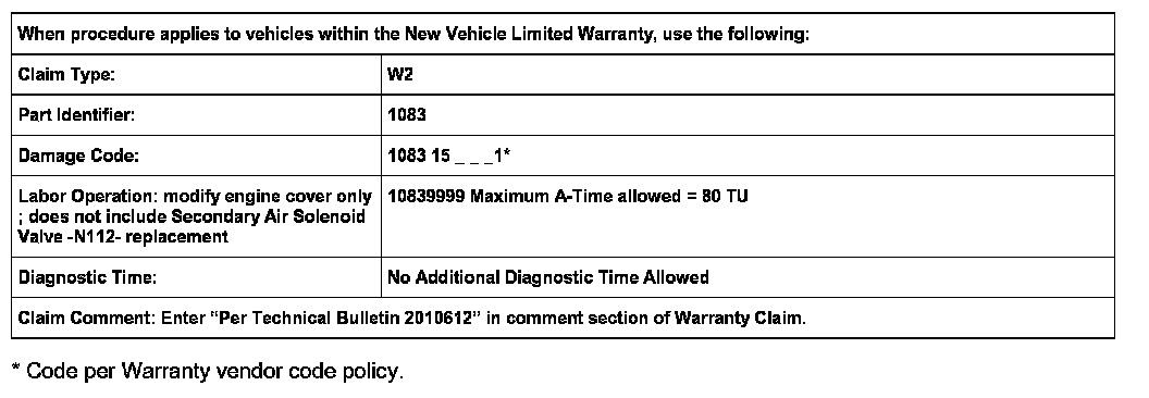 This condition may be caused by lack of clearance between the engine cover and the Secondary Air Injection Solenoid Valve -N112-.