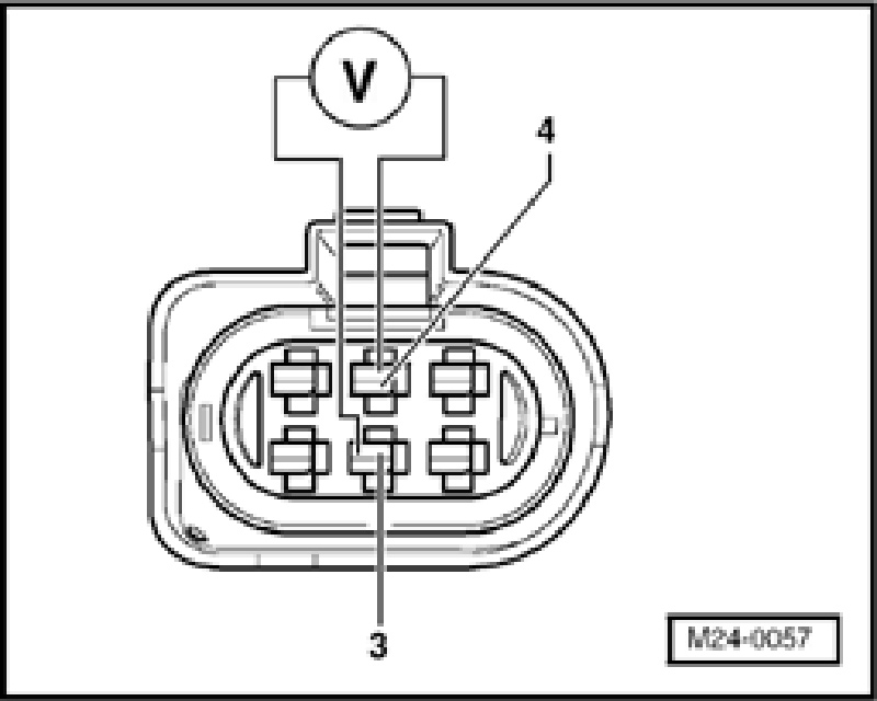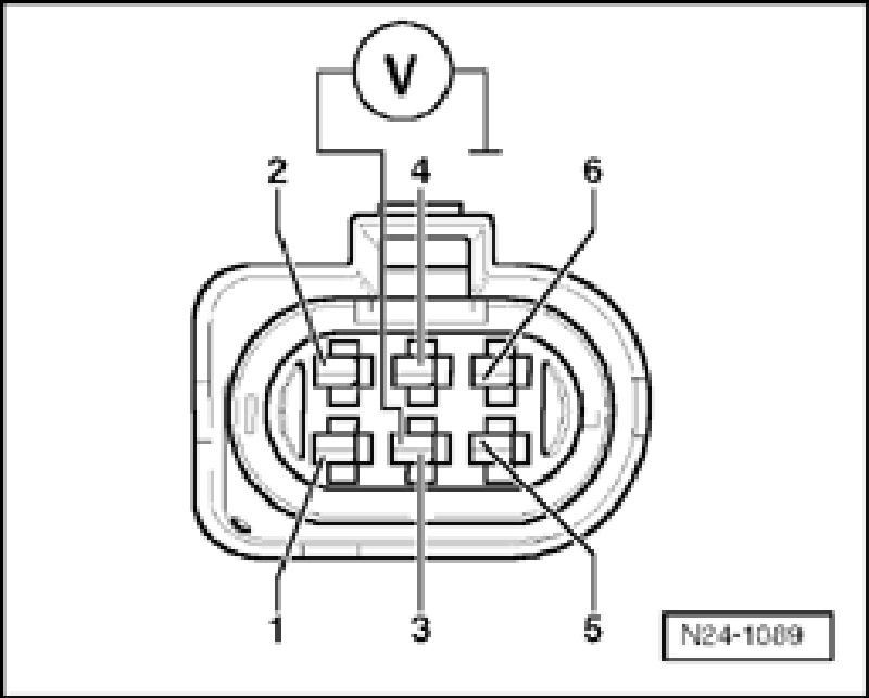 - Check voltage supply at 6-pin connector terminal 3 to Motronic Engine Control Module (ECM) Power Supply Relay -J271- according to wiring diagram: