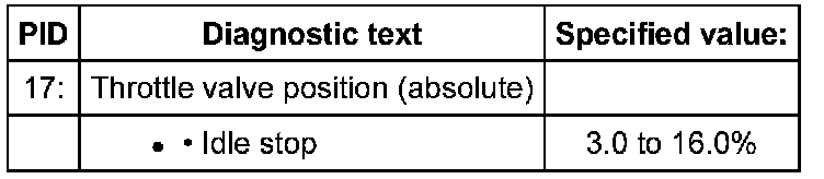 - Check specified value of throttle valve position (absolute) at idle stop: