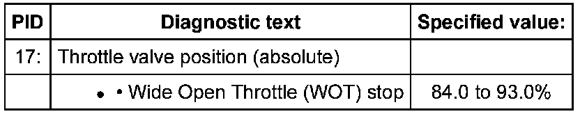 - Check specified value of throttle valve position (absolute) at Wide Open Throttle (WOT) stop: