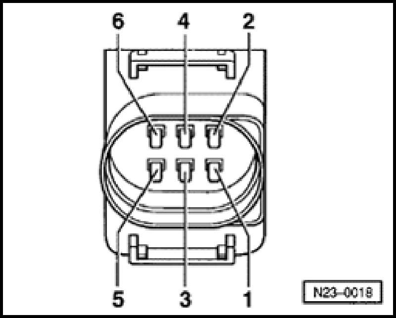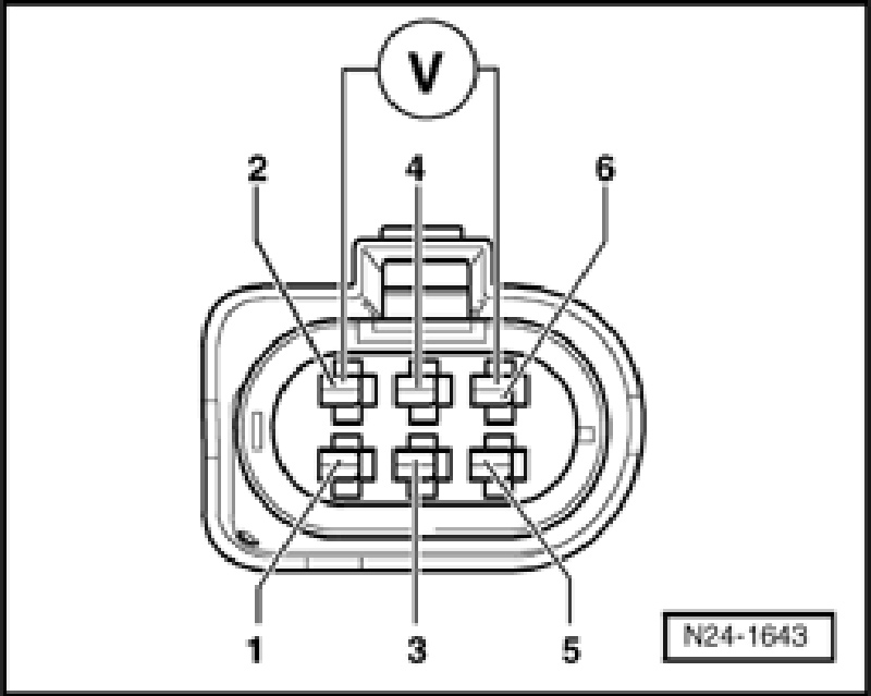 - Connect multimeter to connector terminals 2 + 6 for voltage measurement.