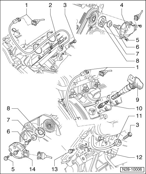 9 Ignition coil with power output stage ((N70, N127, N291, N292, N323, N324, N325, N326))