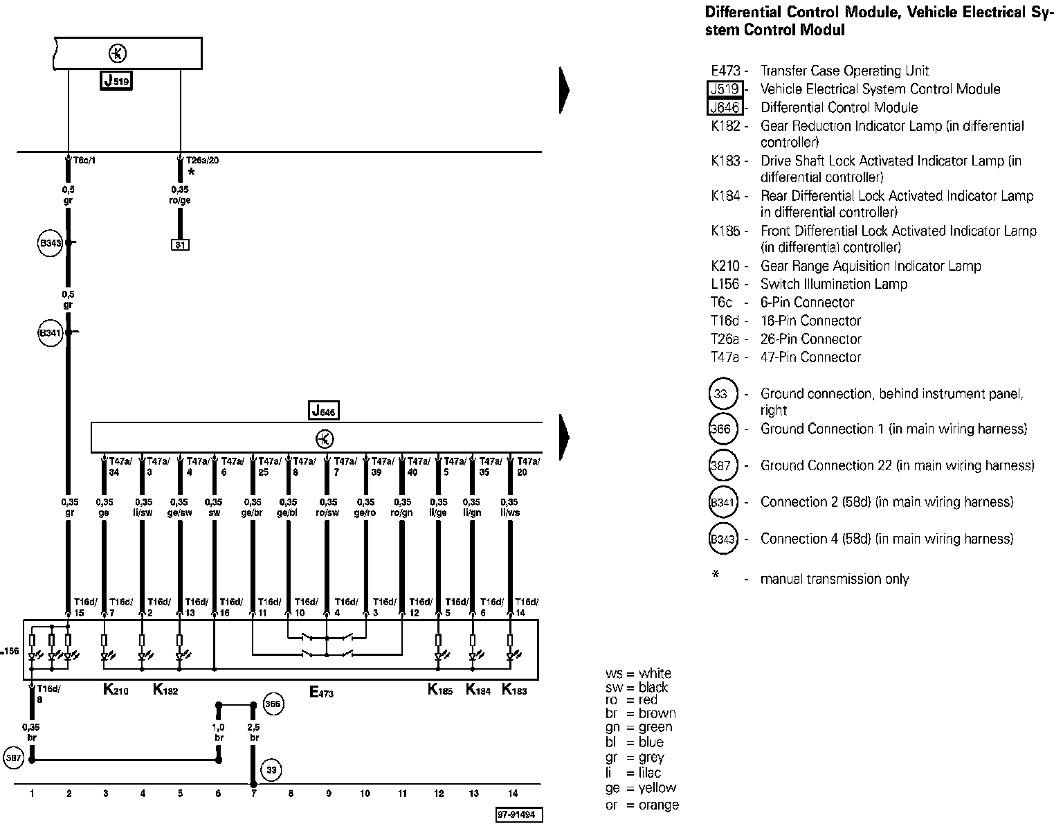 Fuse Identification: Starting with fuse 23, fuses in the fuse holder are identified with an additional numeral 2 added to the number when shown in the wiring diagram (i.e. fuse 23 in the vehicle becomes 223 in the diagrams, fuse 24 becomes 224, and so on).