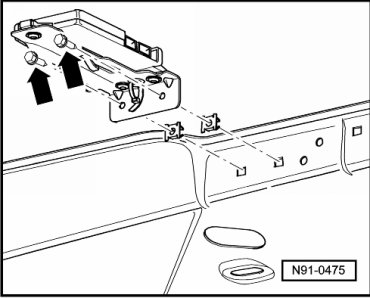 - Remove both mounting bolts - arrows - and remove control module with bracket from roof reinforcement.