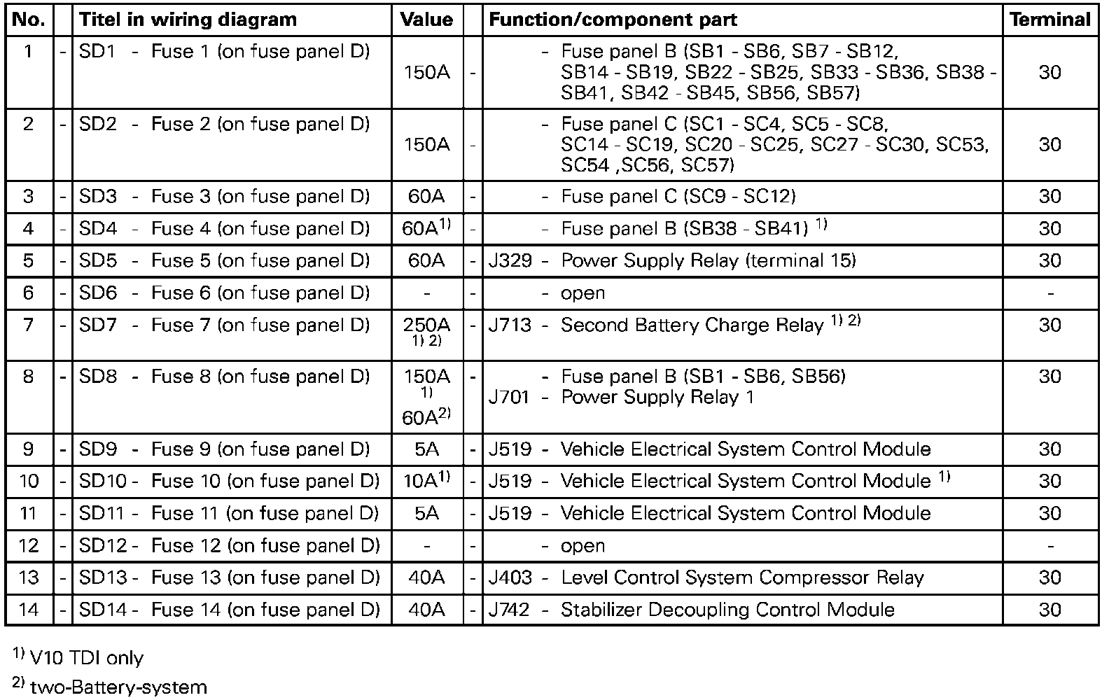 Main Fuse/Relay Box Under Driver's Seat (Fuses "SD"):