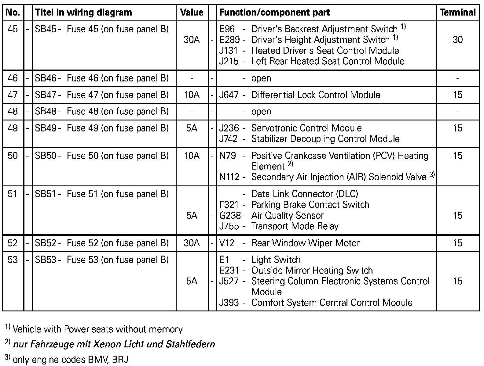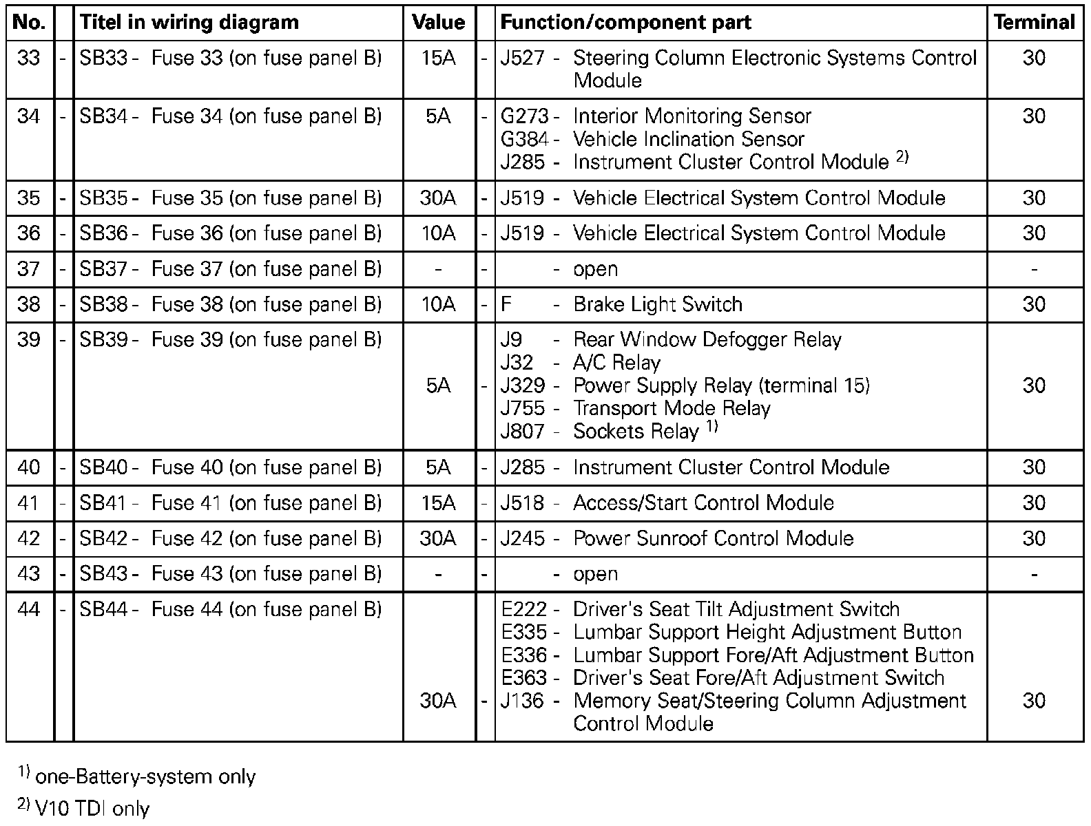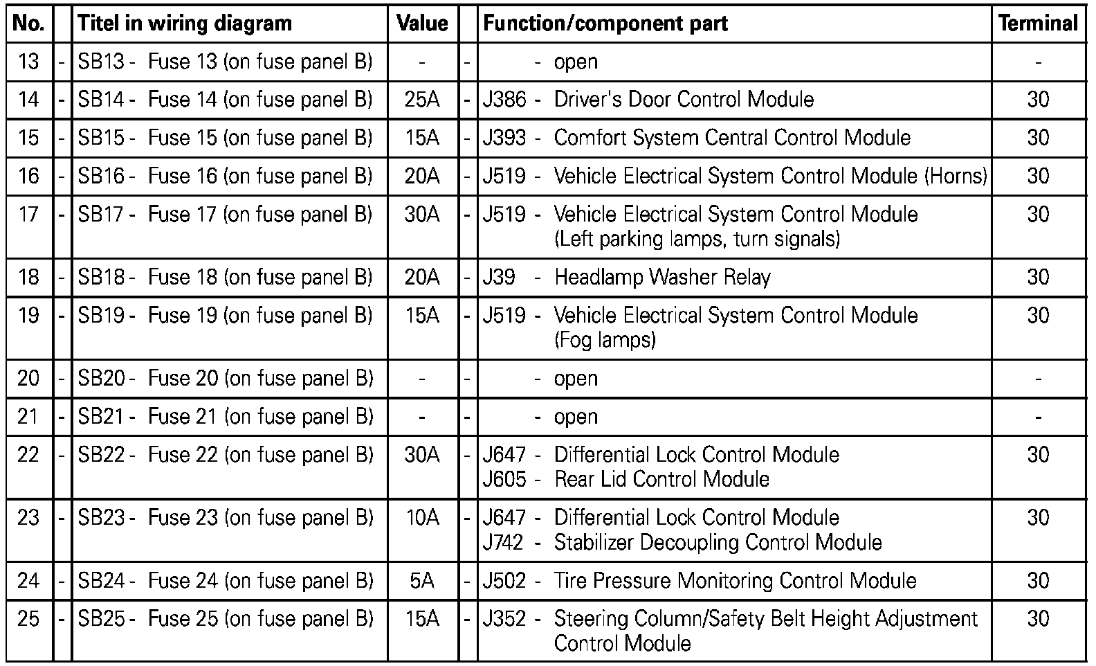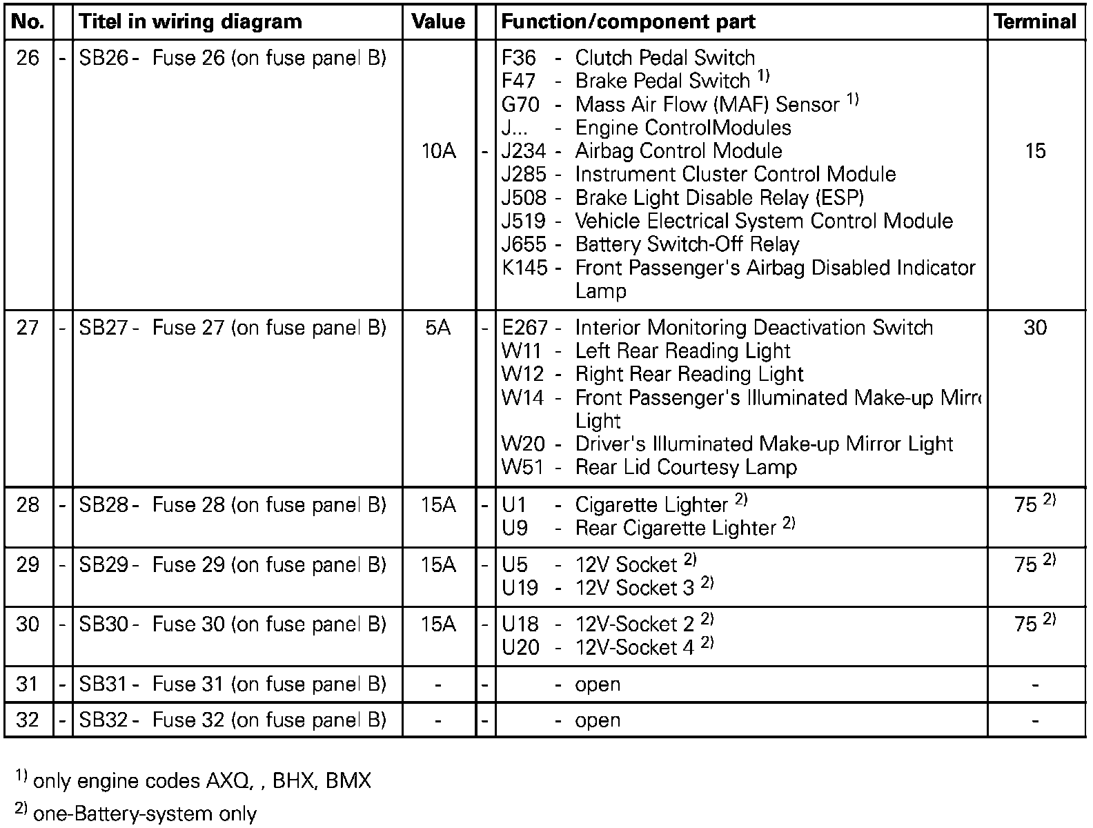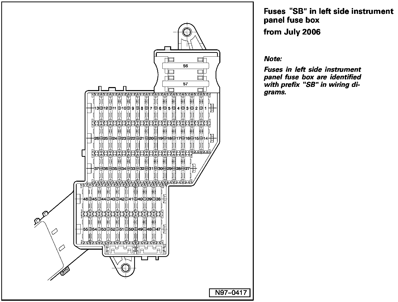Fuses "SB" In Left Side of Instrument Panel Fuse Box, From July 2006
