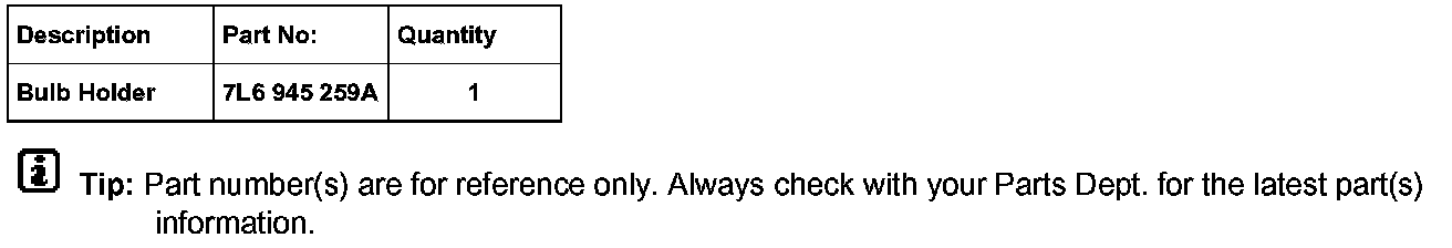 ^ Earlier production bulb holder sockets may only contain 1 notch. Verify current bulb holder socket contains 2 notches, as shown.