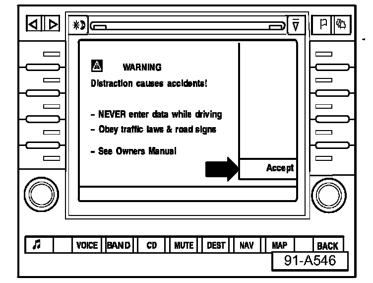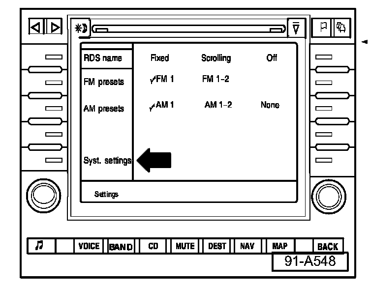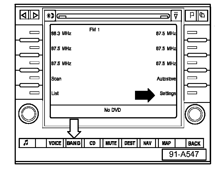 ^ If no presets were saved, switch on Navigation unit, press "BAND" button. (On some units, the button is labeled "RADIO" instead of "BAND")