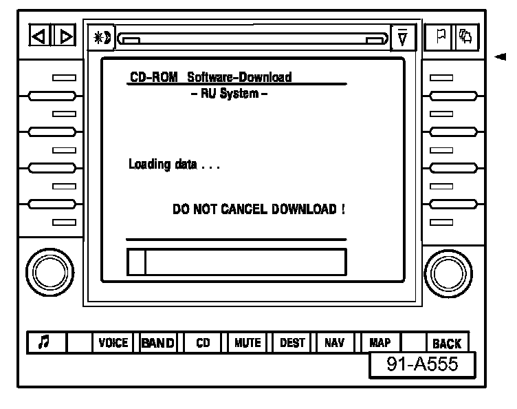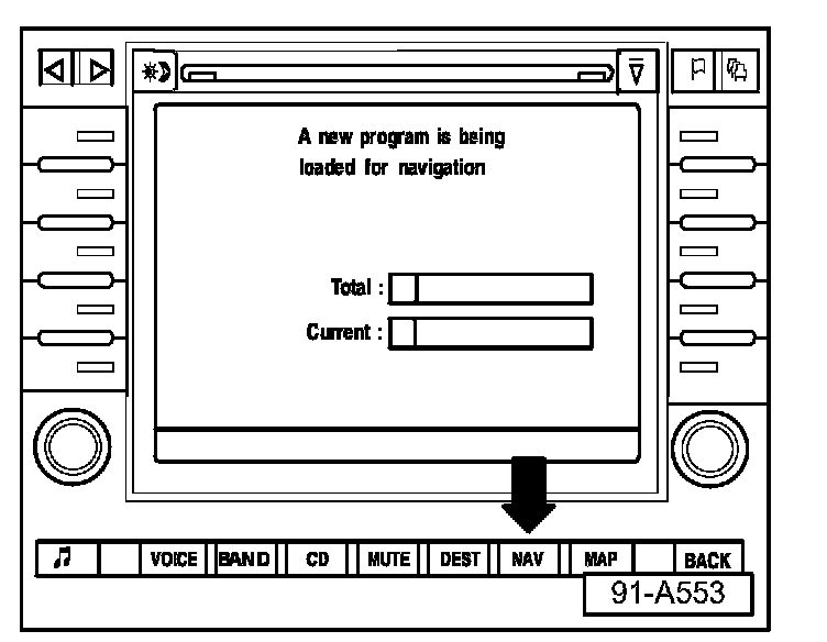 The next step IS NOT the software download. If CD does not load or No DVD Installed, eject programming CD, Install Navigational DVD, select MAP, wait until a map displays, remove Navigational DVD and Install programming CD to continue update. If programming CD does not want to eject, refer to subject matter: