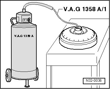 - Extract ATF from the torque converter using oil extractor (VAG 1358 A) and oil extractor probe (VAG 1358 A).