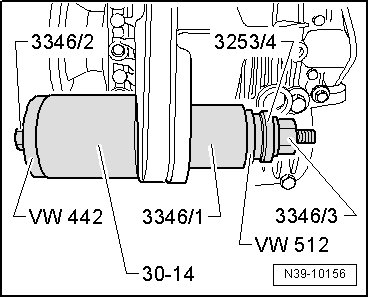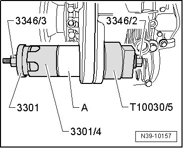 - To do so, place special tool (3346/1) with flat shoulder facing toward bonded rubber bushing onto the spindle (3346/2).