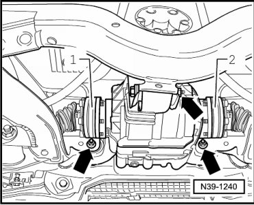 - Fasten the rear final drive to the subframe - arrows -.