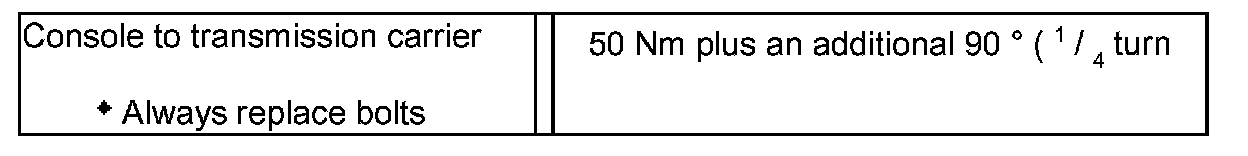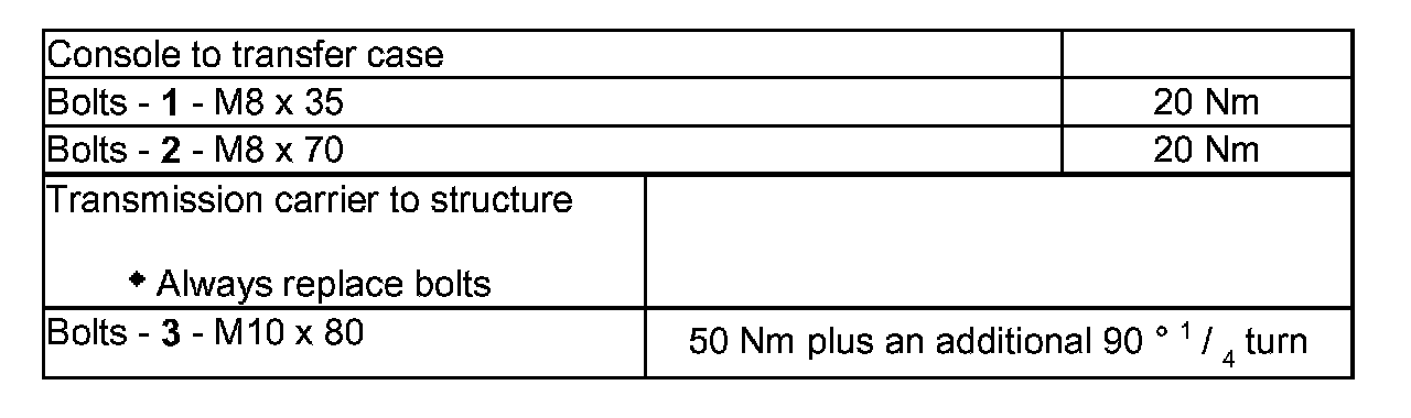 The various options result in the following fastening points for console to transfer case and transmission carrier to structure:.