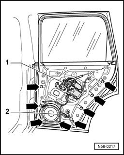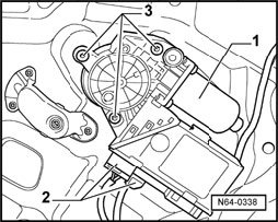 - Unscrew bolts -3- and remove window regulator motor.