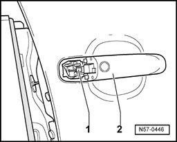 - Unclip clip -1- from door handle -2-.