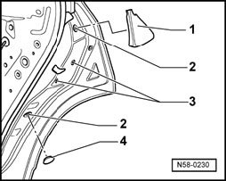 - Guide door window -3- into window guide -3- and place door window into securing elements -2-.