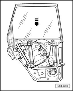 - Lower window by hand in - direction of arrow - to lower stop.