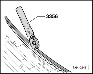 - Turn windshield over again. For a firm connection between windshield and service sealing lip, press down seal using pinch roller (3356).