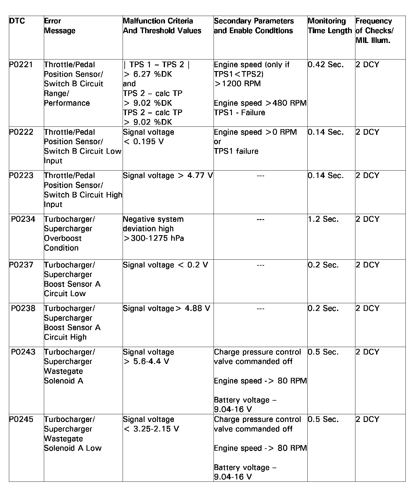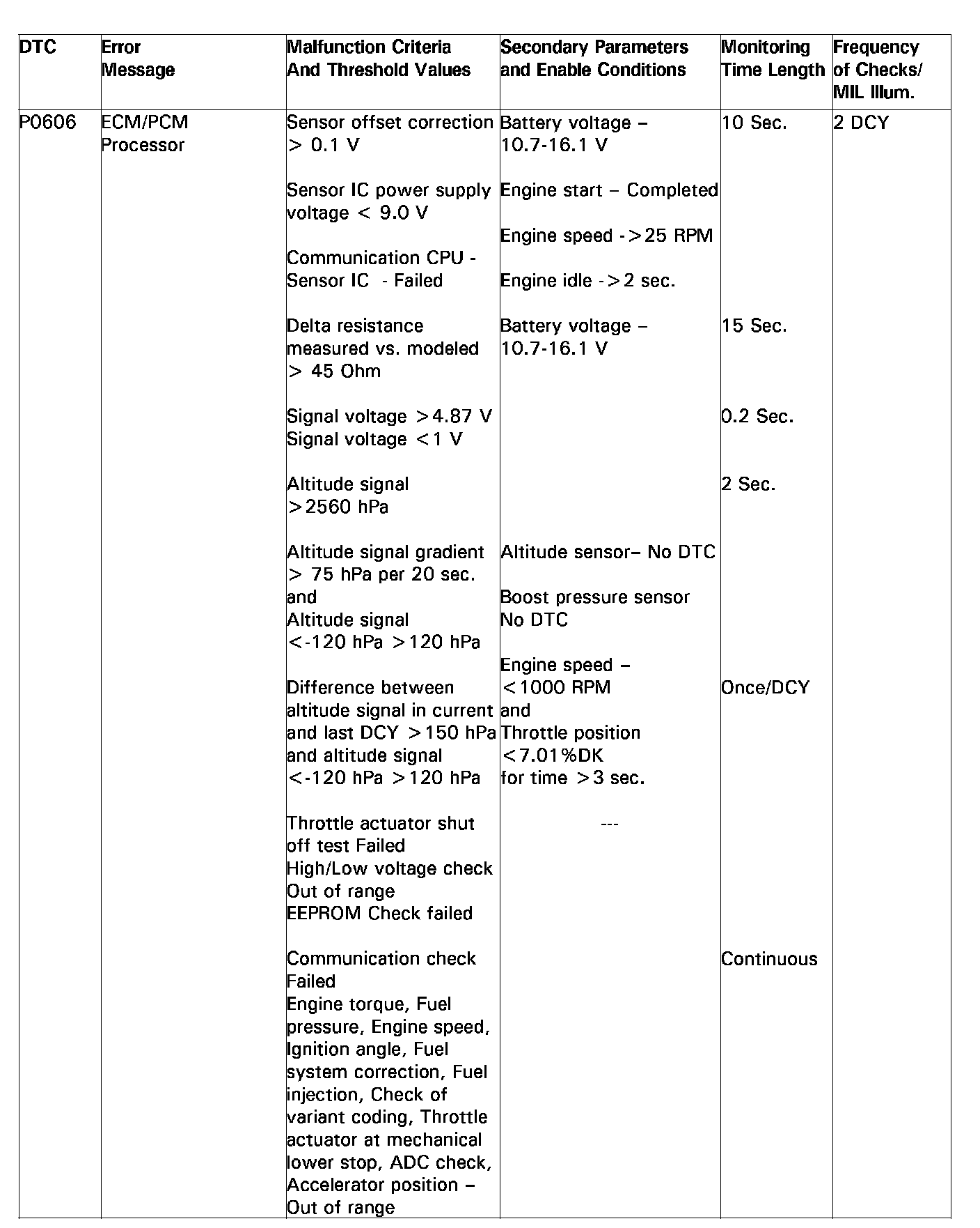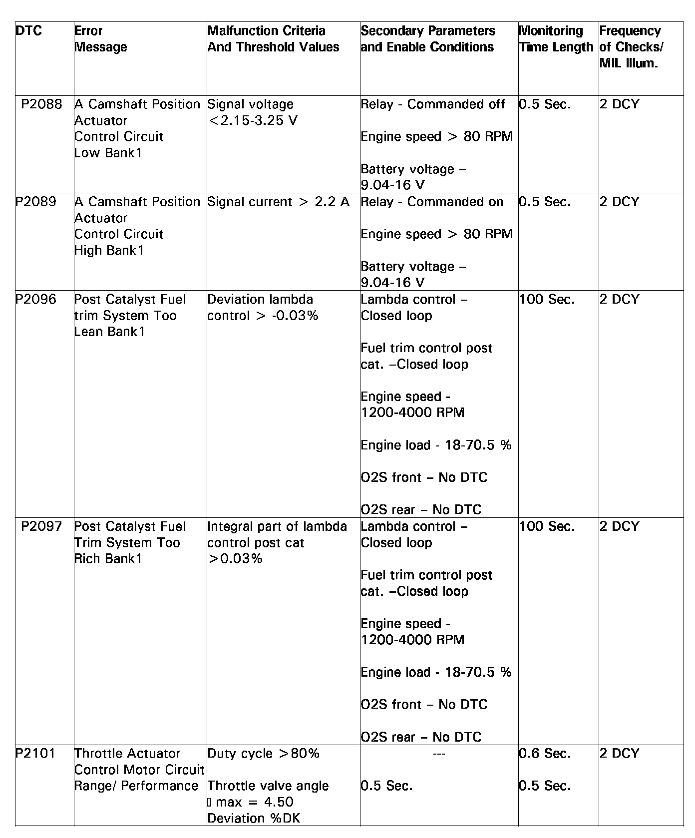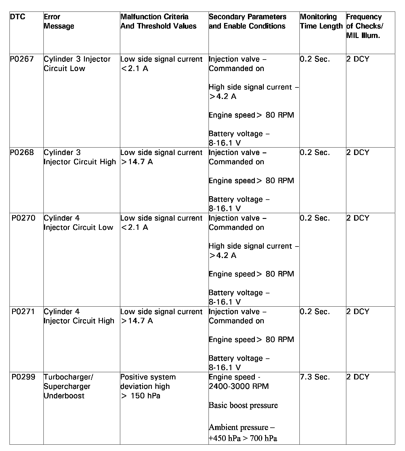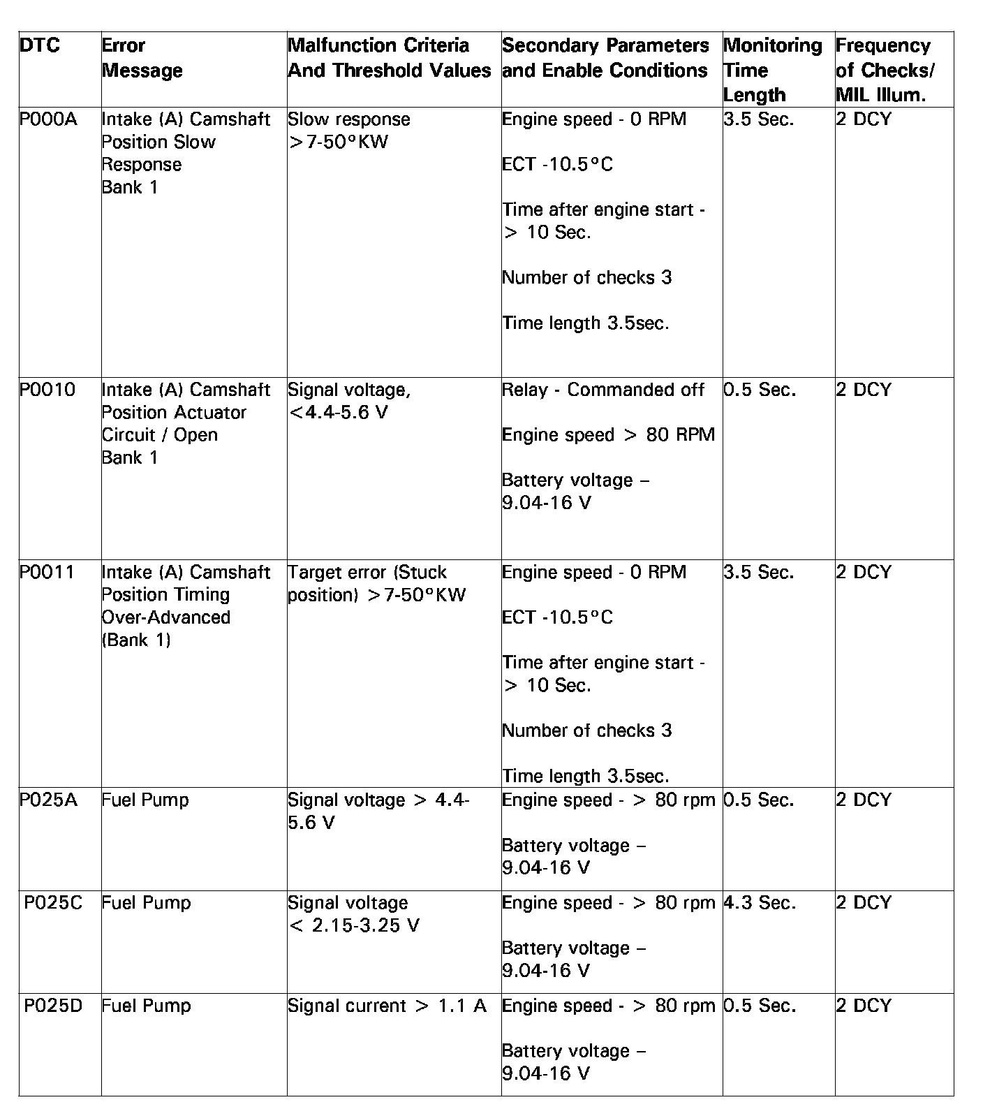.02.00.00 - OBD DTC SUMMARY TABLEDTC P000A - P025D: