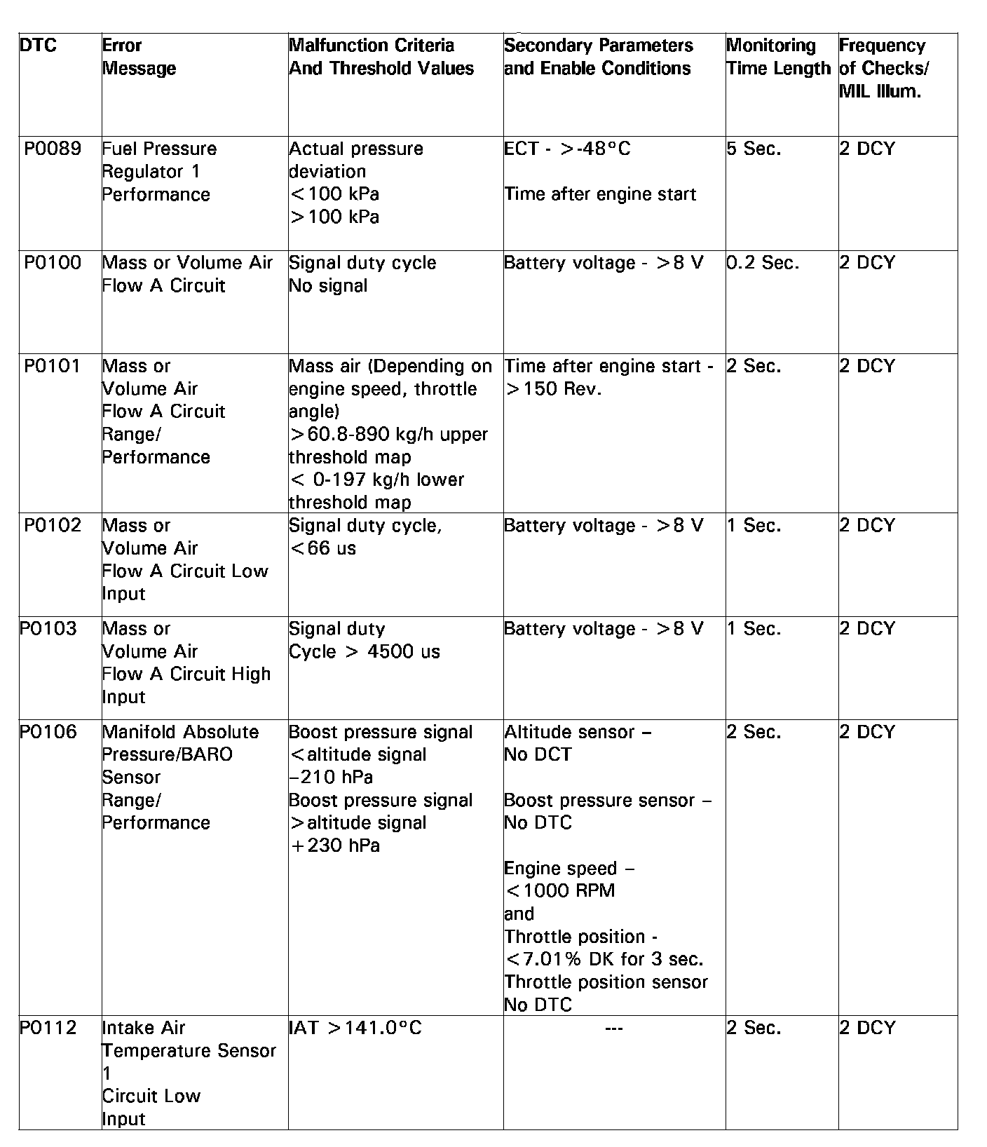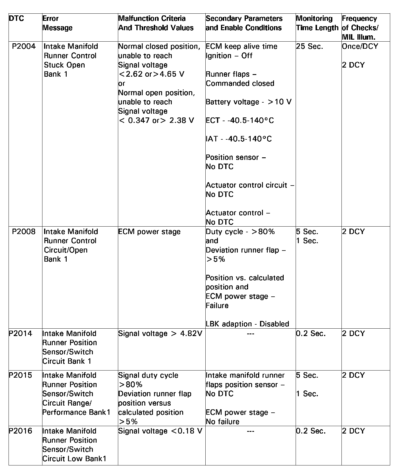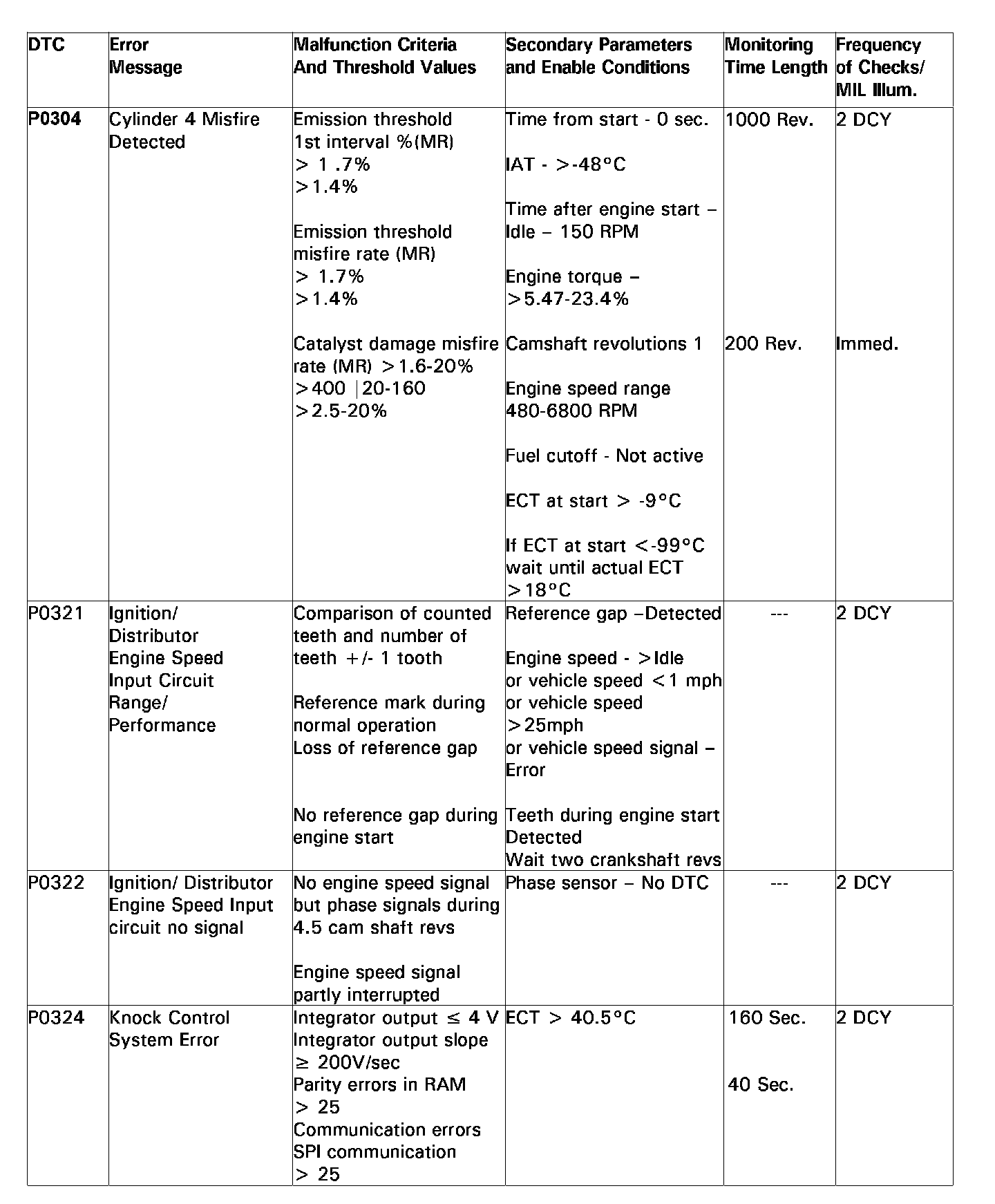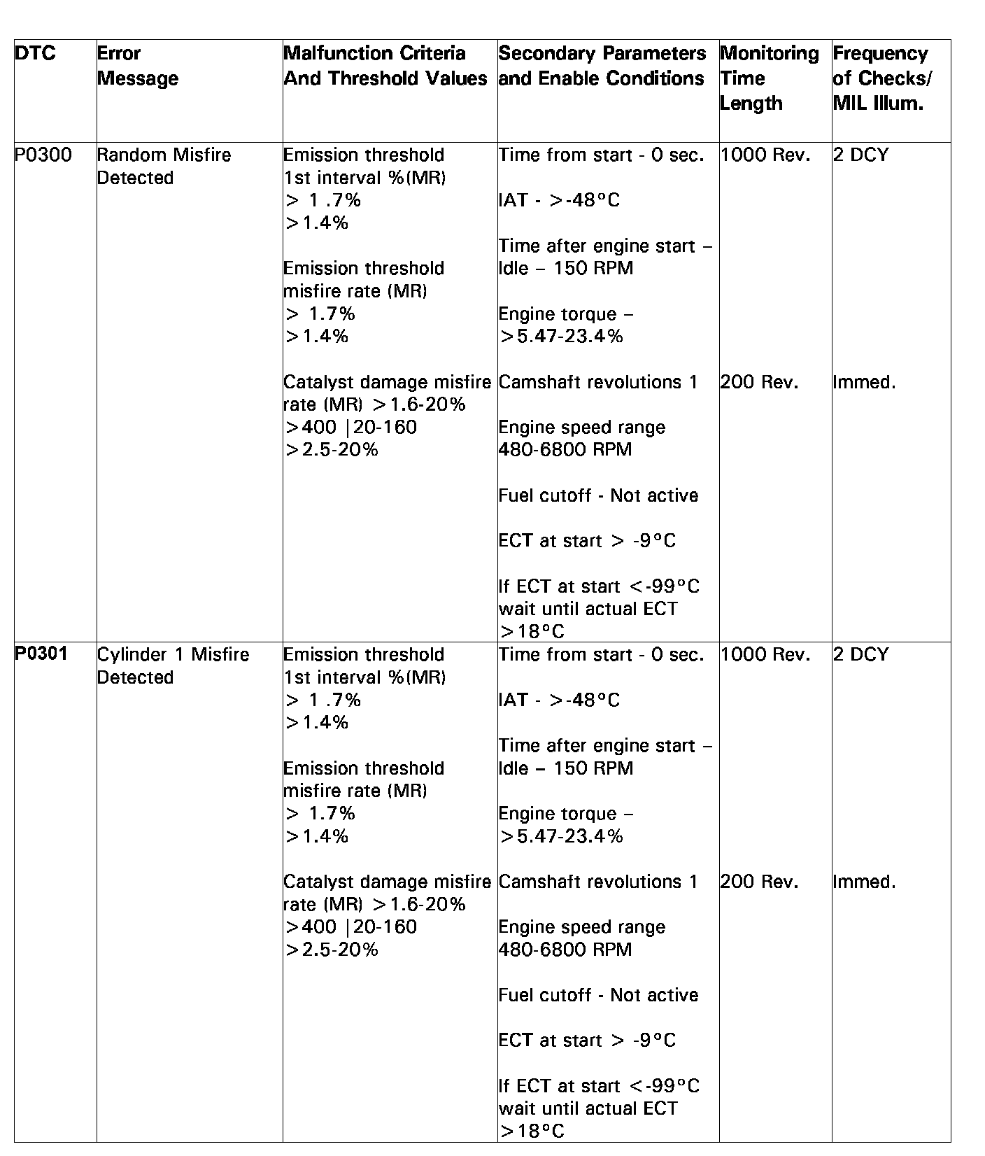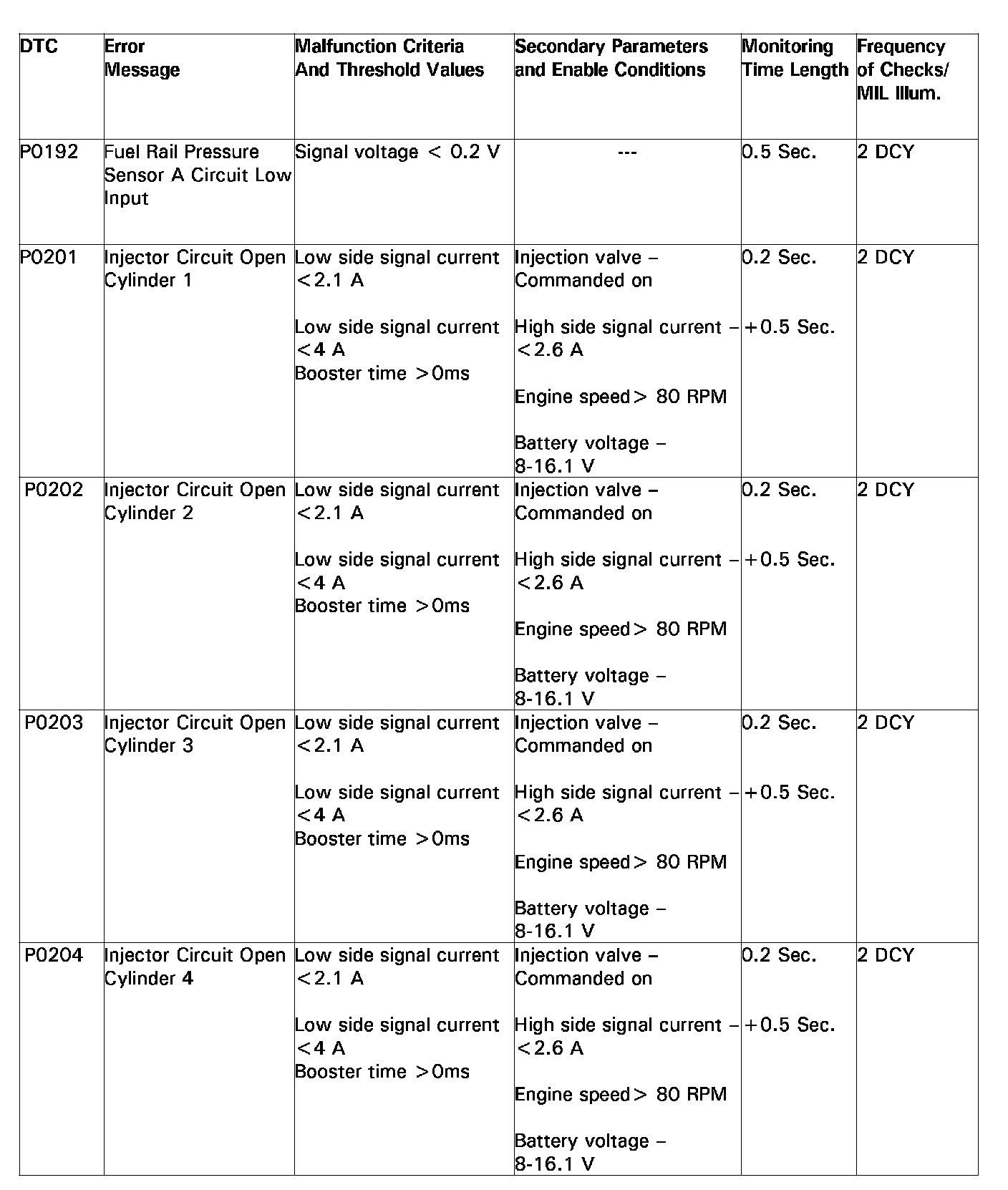 .02.00.00 - OBD DTC SUMMARY TABLEDTC P000A - P025D: