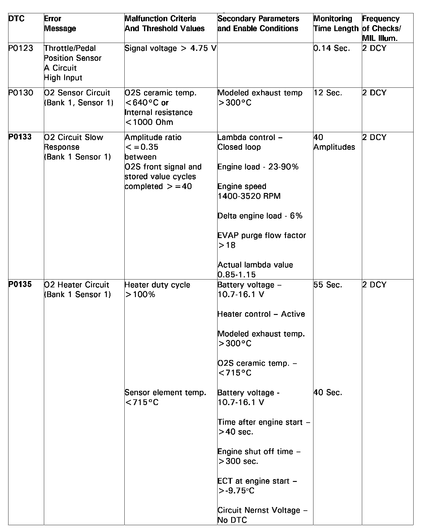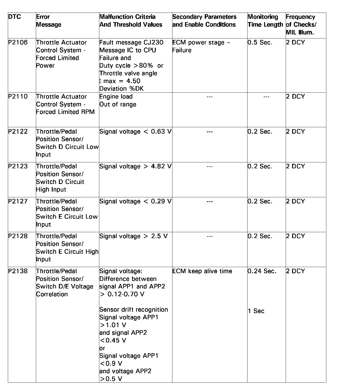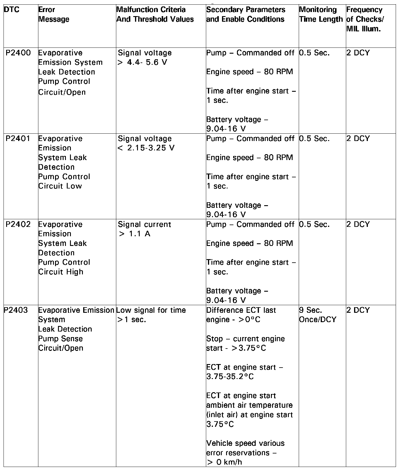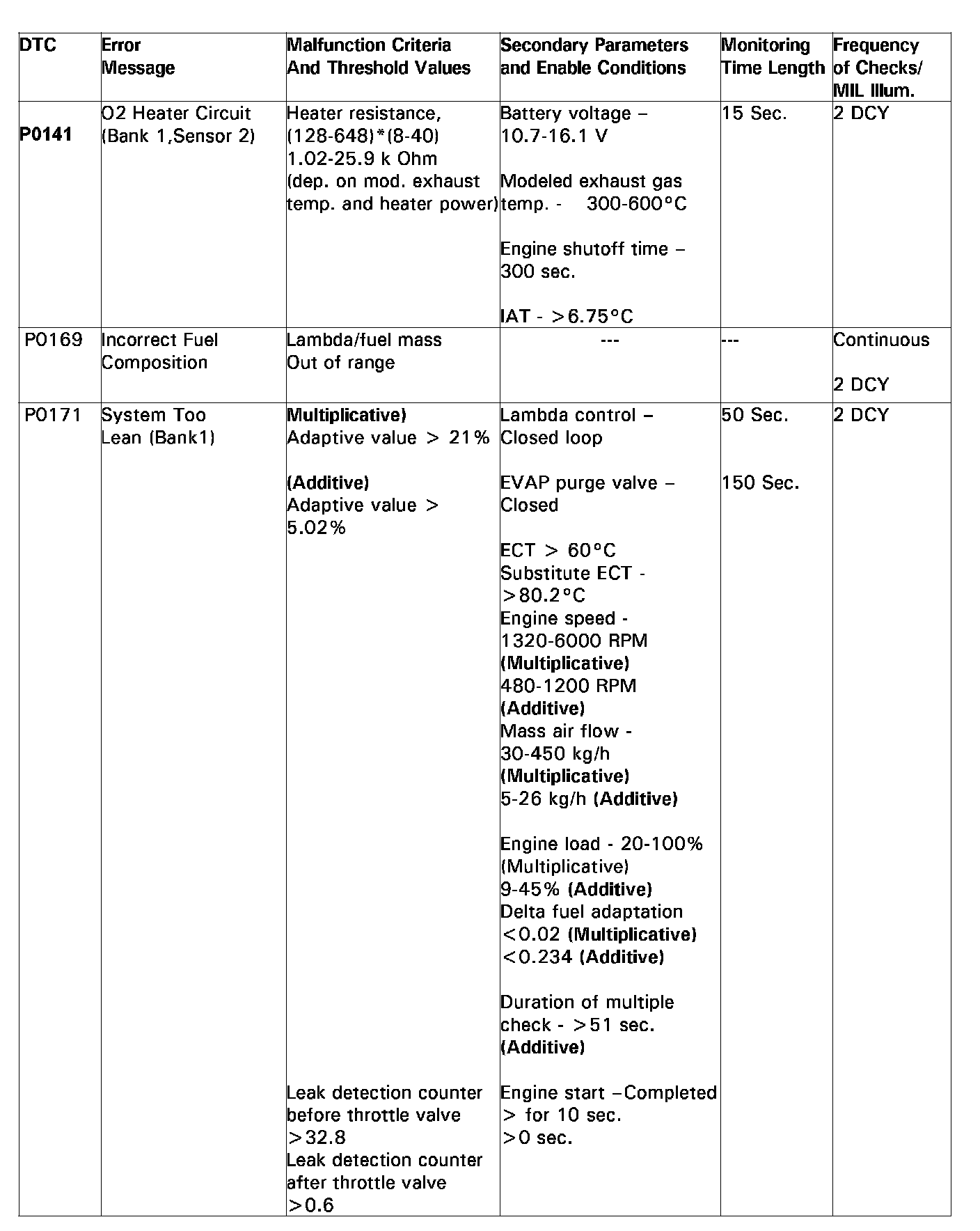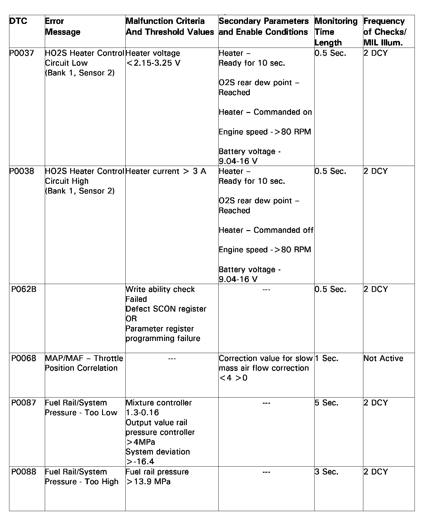.02.00.00 - OBD DTC SUMMARY TABLEDTC P000A - P025D: