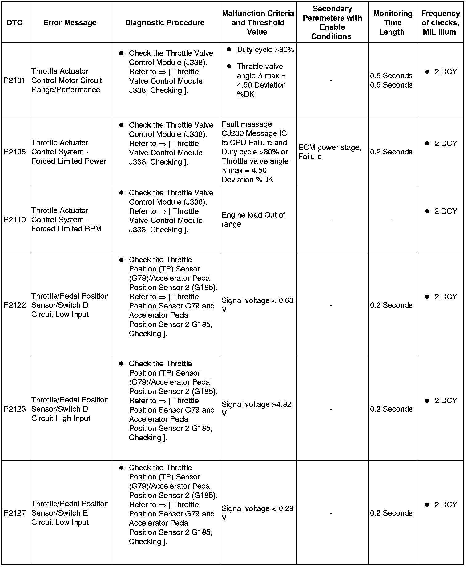 SAE P2xxx Diagnostic Trouble Codes
